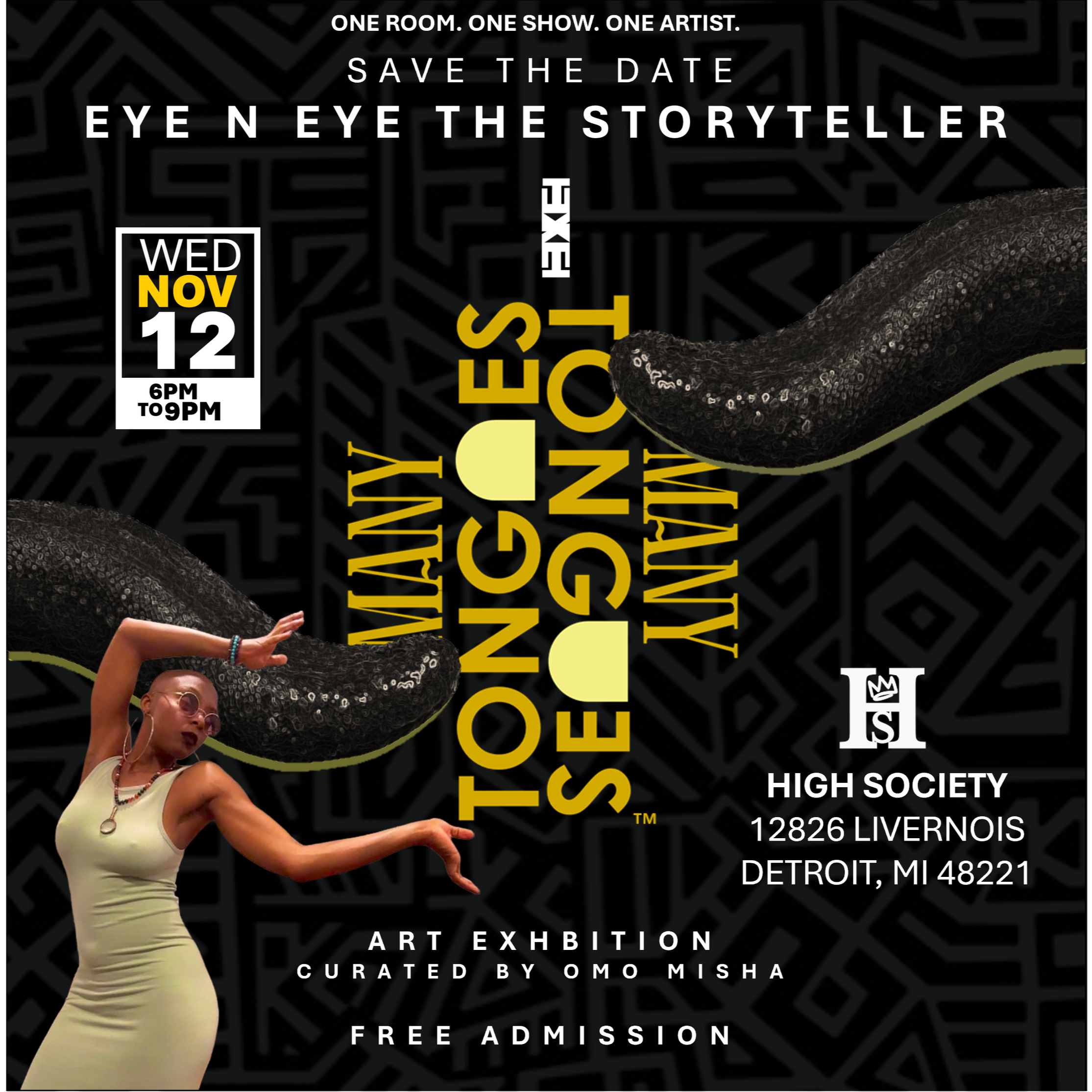 Many Tongues™ is an immersive storytelling exhibition that explores how narrative transcends form — unfolding through food, poetry, comedy, visual art, fashion, film, and performance. Curated by Misha McGlown (Omo Misha) and created by Brittini Ward (Eye N Eye the Storyteller), the exhibition transforms High Society (12826 Livernois, Detroit) into a living archive of sound, taste, image, and memory. Each activation — from culinary storytelling and live comedy to spoken word, fashion talks, and visual installations — invites audiences to experience language in its many expressions.